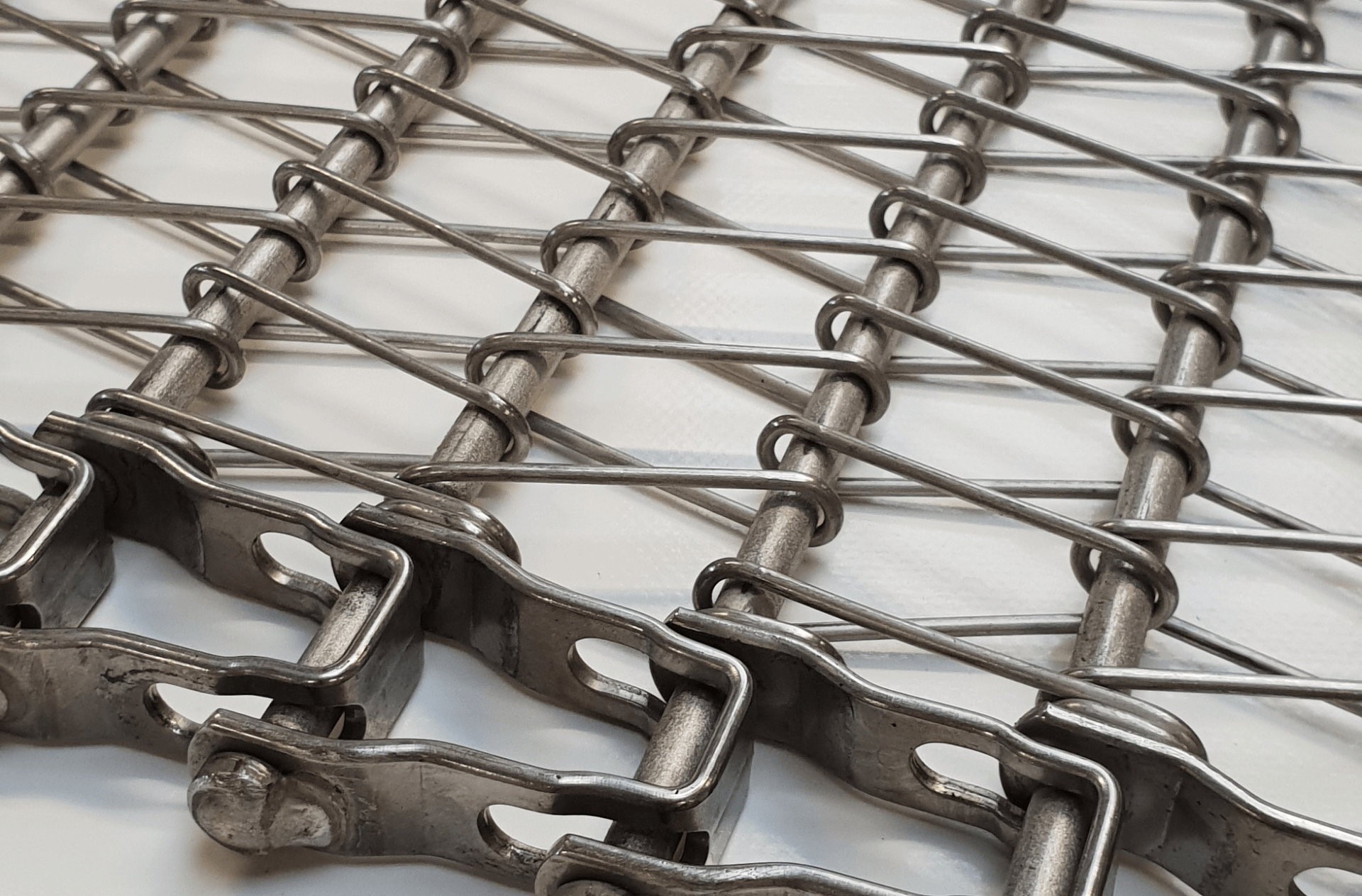 Sa structure similaire au tapis à spirale est complétée par des maillons latéraux, utilisés pour la transmission. Consultez nous pour obtenir une définition précise de votre tapis, en remplacement ou en amélioration de votre tapis actuel. Un large programme de livraison nous permet de nous adapter à vos contraintes de courbure, d’encombrement